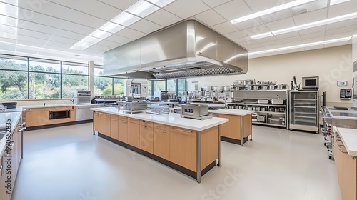 Modern Minimalist Kitchen Room with Wooden Table, luxurious Interior Design, Furniture with Background