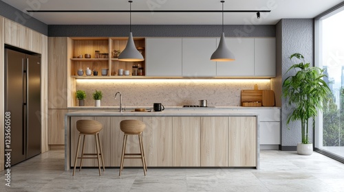 Modern Minimalist Kitchen with Wood Accents and Natural Light