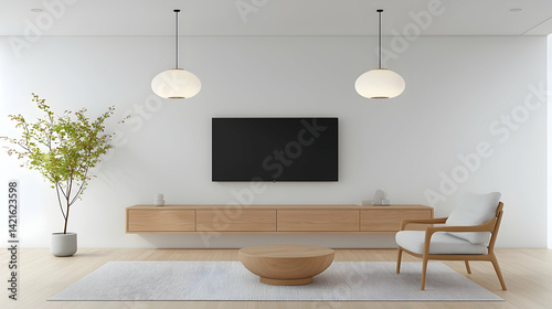 Modern Minimalist Living Room Interior Design with Wooden Furniture and Neutral Color Palette