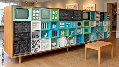 Modern Modular Cabinet Cyan Black Art Deco Style Handcrafted Sculptures Home Decor