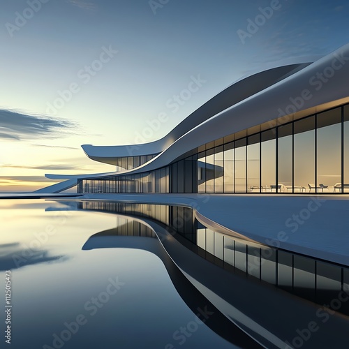 Modern museum exterior, avantgarde architecture and reflective surfaces, 3D illustration