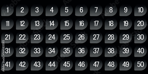 Modern Number Icon Set 1 to 50 on Dark Gradient Background
