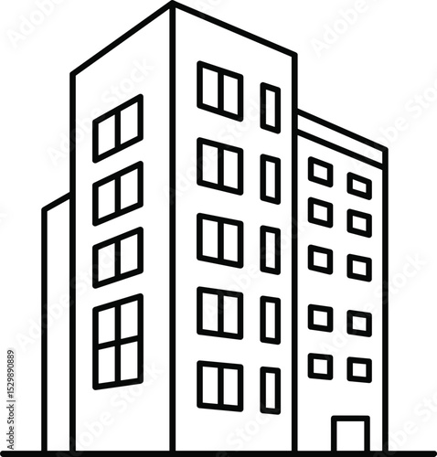 Modern office building illustration in black and white style