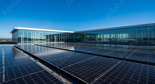 Modern Office Building Rooftop with Solar Panels Sustainable Energy and Green Technology