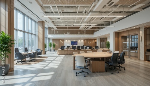 Modern Office Interior with Bright Lighting and Open Layout Design