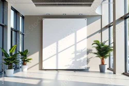 Modern Office Space Mockup with Blank White Wall and Lush Green Plants