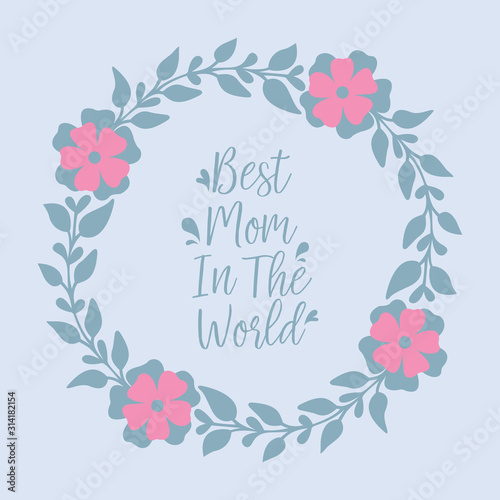 Modern pattern for best mom in the world greeting card, with leaf and wreath frame. Vector