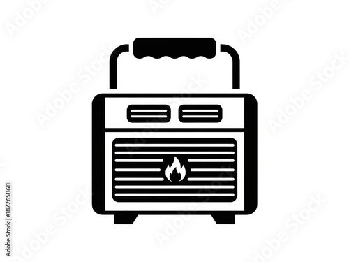 Modern portable heater with flame icon on front panel
