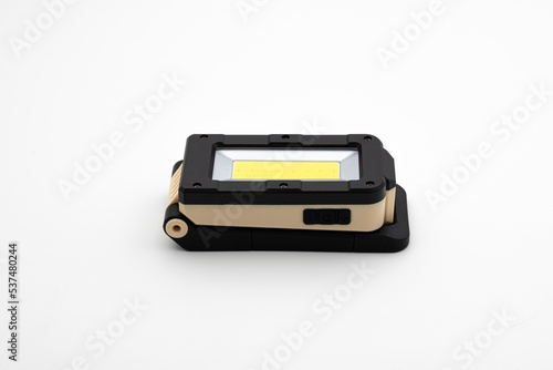 Modern Portable Load Shedding Folding LED Work Light With Torch Battery Powered USB Rechargeable Magnetic Base Adjustable Angle Durable Industrial Isolated in White Background