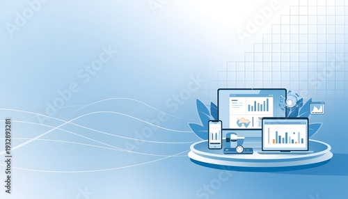 Modern professional software as a service saas background design featuring devices with graphs