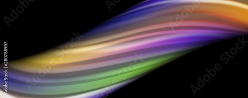 Modern rainbow liquid color flow colorful poster. Wave Liquid shape in black color background. Abstract composition