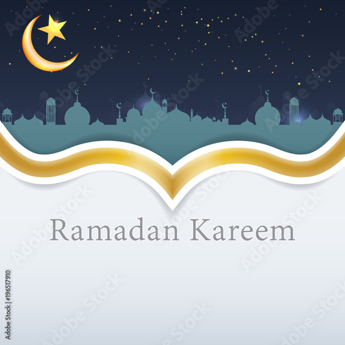 Modern Ramadan Kareem background icon vector illustration design graphic with islamic crescent moon 3D.
