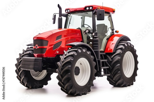Modern red agricultural tractor isolated on white background