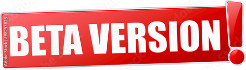 modern red beta version vector sign in red with metallic border and a exclamation mark