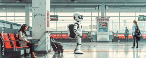 Modern robot assistants in a public space showcasing advanced artificial intelligence