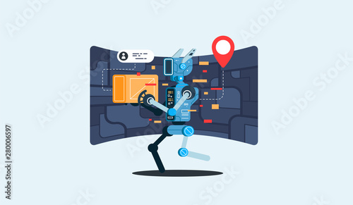 Modern Robot Courier Artificial Intelligence Technology Concept Flat Vector Illustration
