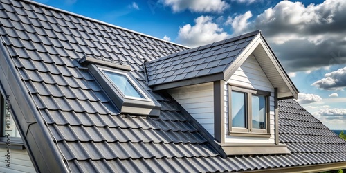 Modern Roof Design Dark Metal Tile, Dormers and Skylight, Roofing, Architecture