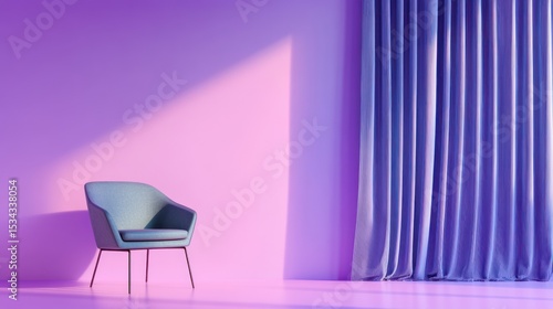 Modern room with armchair and drapes