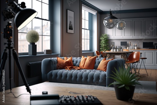 Modern Scandinavian living room interior, Generative ai