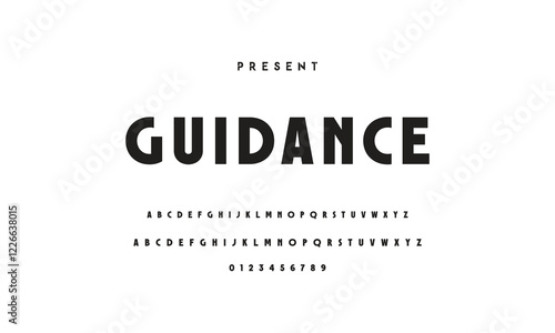Modern serif alphabet design with uppercase, lowercase, numbers and symbol