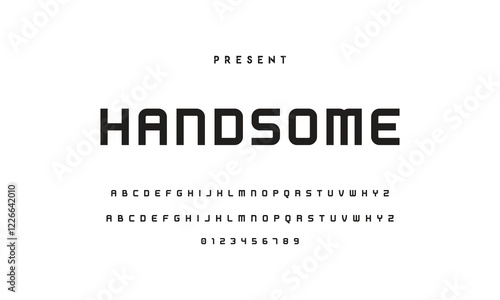Modern serif alphabet design with uppercase, lowercase, numbers and symbol