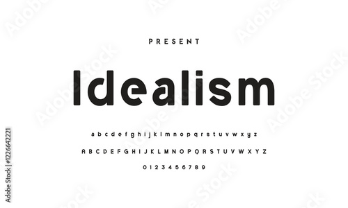 Modern serif alphabet design with uppercase, lowercase, numbers and symbol
