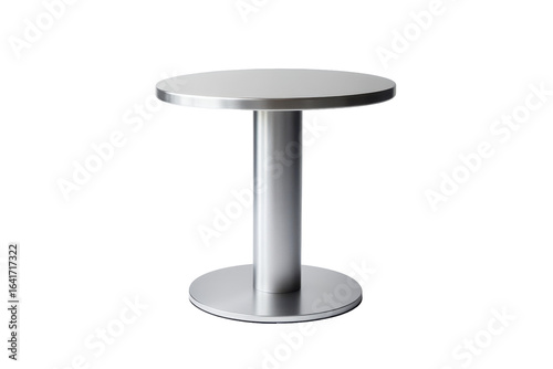 Modern silver pedestal table isolated on transparent background. Pedestal stand designed for product display featuring a sleek and modern metallic finish isolated on white background.