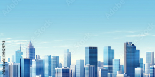 Modern Skyline with High-Rise Office Buildings under Blue Sky