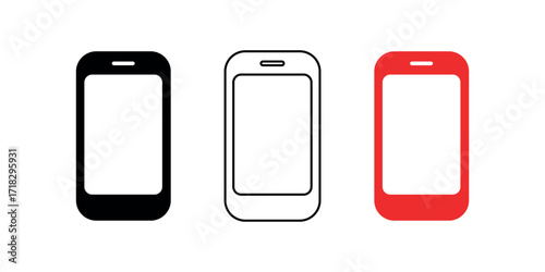 Modern Smartphone Vector Icons in Black, Outline, and Red on a Clean White Backdrop