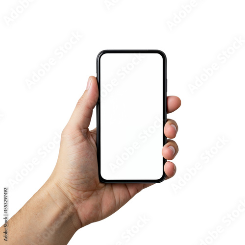 Modern smartphone with a blank white screen angled on a transparent background isolated on transparent background