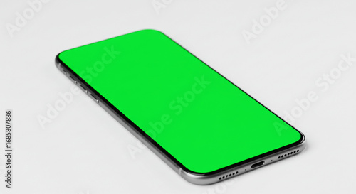 Modern smartphone with bright green screen ready for your custom content and app previews