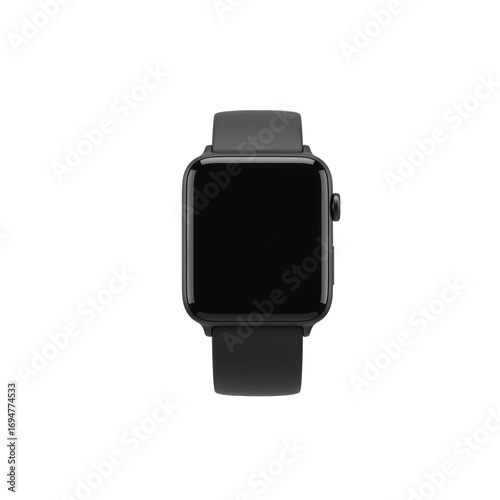 Modern smartwatch with dark screen and gray band isolated transparent background