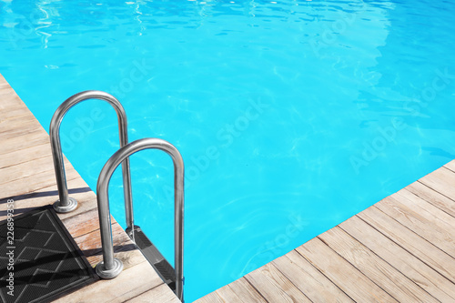 Modern swimming pool with step ladder outdoors