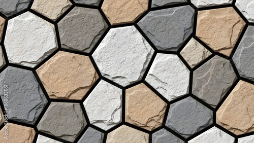 Modern Textured Stone Paving Pattern with Polygonal Masonry and Natural Rock Finish