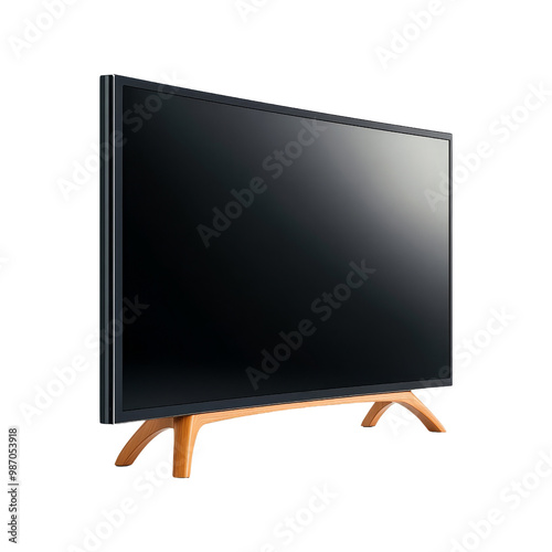 Modern TV with Wooden Stand Isolated