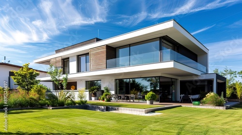 Modern two-storey house with a flat lawn in the yard