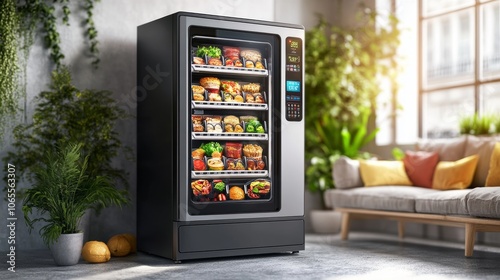 Modern Vending Machine with Snacks and Drinks in a Contemporary Living Room