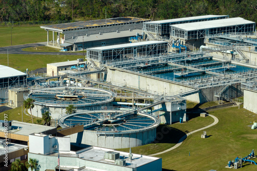 Modern water cleaning facility at urban wastewater treatment plant. Purification process of removing undesirable chemicals, suspended solids and gases from contaminated liquid