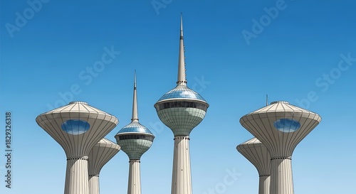 Modern Water Towers Against Blue Sky - Architectural Marvels.