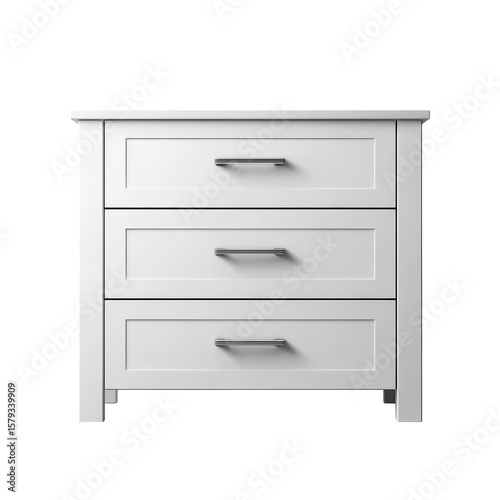 Modern white drawer cabinet featuring three spacious drawers and minimalist handles, ideal for stylish home storage. on transparent background