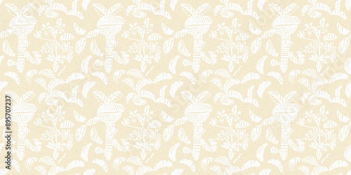 Modern white on cream lace effect wedding border texture. Soft tonal linen openwork block print with subtle hand drawn lattice damask printed fabric banner edge trim.