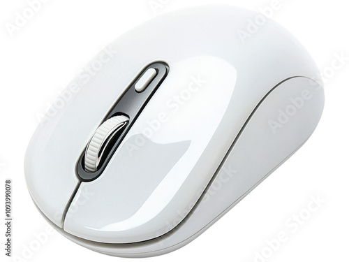 Modern Wireless Computer Mouse on White Background, Sleek Ergonomic Design, Ideal for Home Office, Gaming, or Everyday Use with Responsive Scroll Wheel and Clean Aesthetic