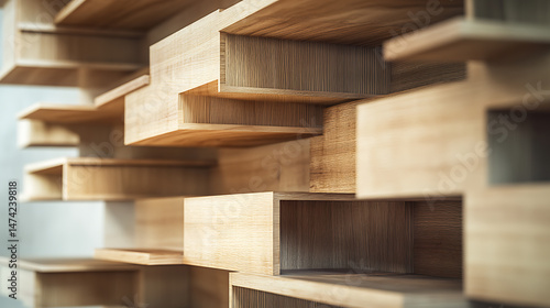 Modern Wooden Shelving Unit with Geometric Design