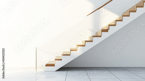 Modern wooden staircase with a bright, minimalist design.