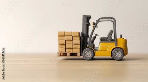 Modern yellow forklift transporting loaded pallet in sleek 3D design, emphasizing efficiency and logistics. .