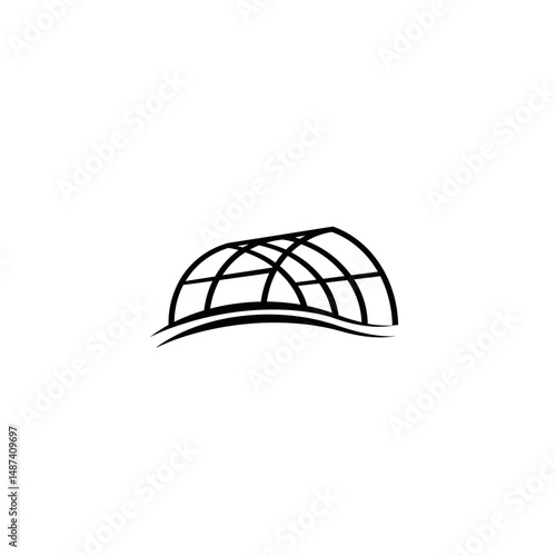 Modernistic Structure: This black and white illustration showcases an artistic architectural design. A minimalist line drawing of a modern, arched structure.