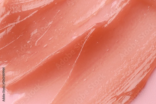 Moisturizing lip balm on pink background, above view