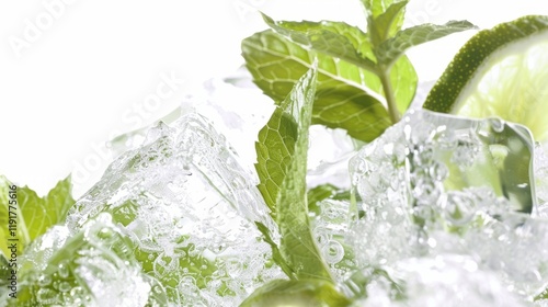 mojito cocktail: ice, lime, mint