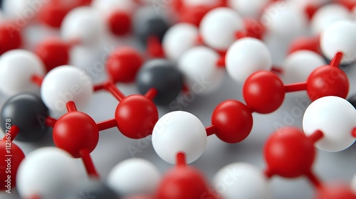 Molecular Structure: Red, White, and Gray Spheres Connected by Red Bonds