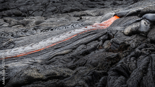 Molten magma breaking through the ground of the lava fields of Puu Oo, Big Island, Hawaii.